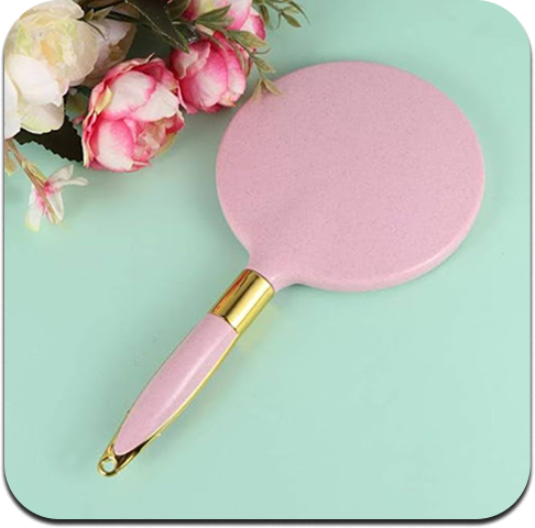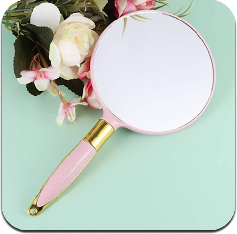 - Sostén el espejo con una mano y realiza retoques de maquillaje o cejas.