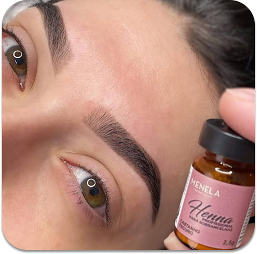 Henna Menela tono castaño oscuro para cejas profundas y definidas. Fórmula vegana, de alta duración, con acabado uniforme y profesional.