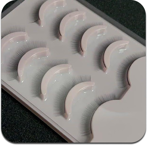 1. Coloca las tiras de pestañas sobre el maniquí o superficie de práctica.