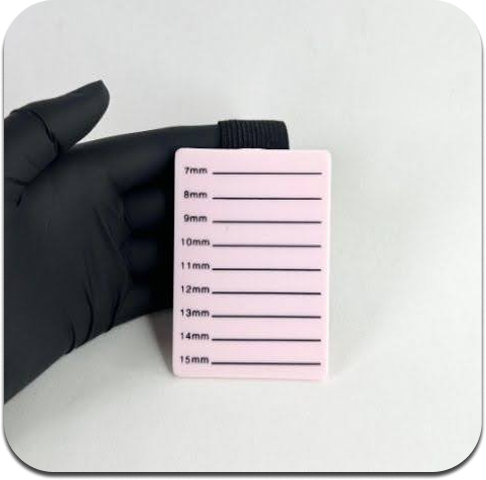 El Soporte de Pestañas Brazalete es la herramienta ideal para lashistas que buscan comodidad y precisión. Su diseño ergonómico se ajusta a la muñeca, permitiendo una aplicación más ágil y ordenada de extensiones. Las líneas guía por largo ayudan a identificar rápidamente cada medida, optimizando el flujo de trabajo profesional en tratamientos con Rare Way, Glance y otras marcas de pestañas premium.