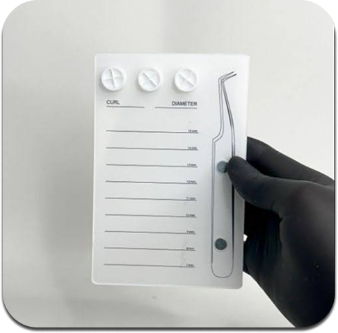 - Adhiere las pestañas según su medida (7–15 mm).